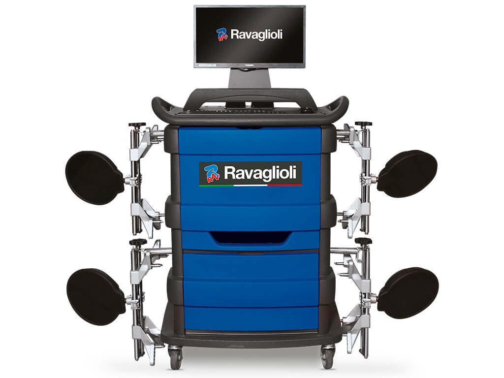 RAVTD3200SP je 3D geometrie kol od italského výrobce RAVAGLIOLI s 3D měřícími hlavami a komunikací přes technologii Bluetooth. Součástí jsou samostředící 3bodové nebo 4bodové upínače, 22palcový monitor a uzavřená skříň v modré barvě (RAL 5005).
