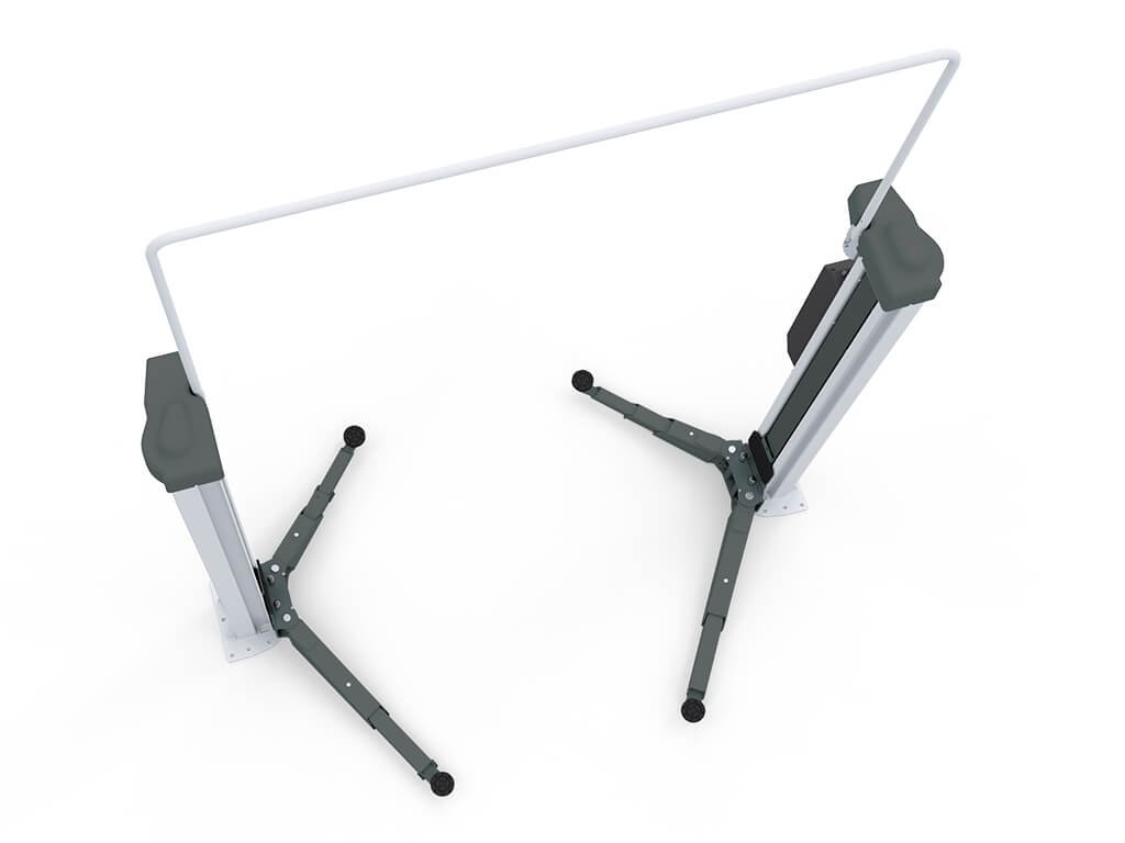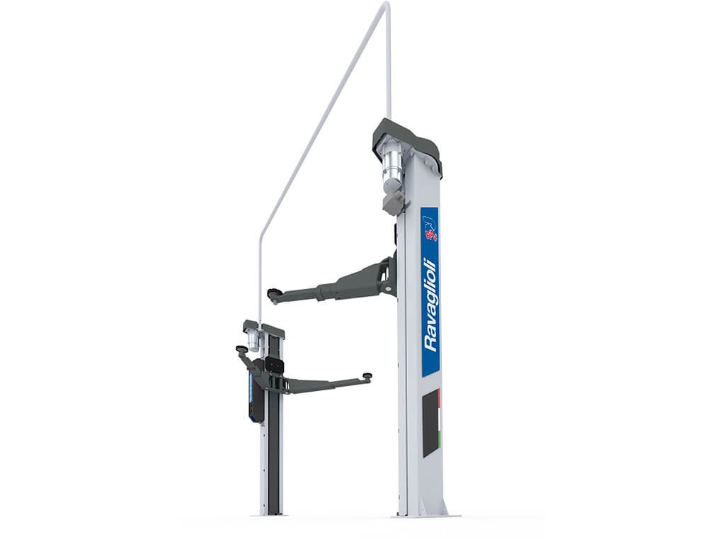 Elektromechanický dvousloupový autozvedák bez přejezdu pro zvedání osobních, dodávkových a malých užitkových vozů nepřesahující hmotnost 3200 kg. Elektronické vyrovnávání zamezuje rozdílu ve výšce vozíků větší než 20 mm.