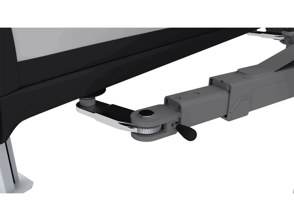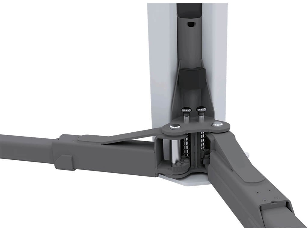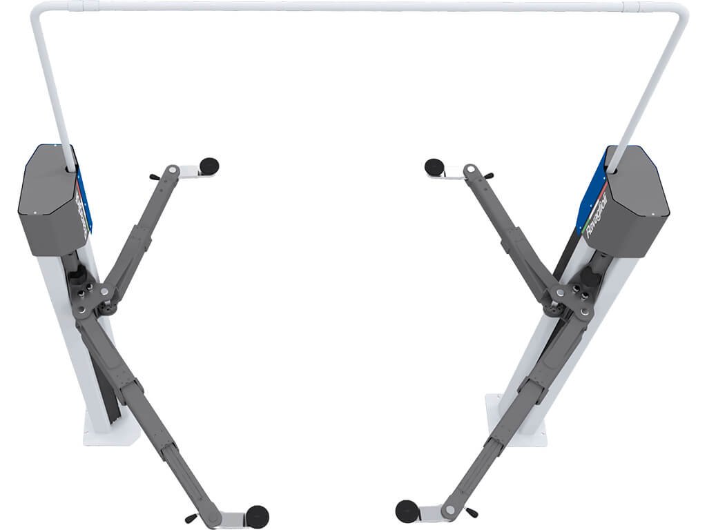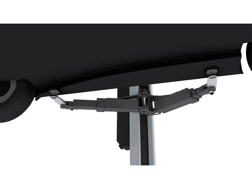 Inovativní, nízkoprofilová ramena s rotačními konci umožňují jednoduché a rychlé umístění patek pod zvedací body všech typů vozidel, od malých city vozítek po vozidla s dlouhým rozvorem jako např. VW T6. Rotační konce zamezí poškození karoserie, což je výhodné především při zvedání aut s nízkým profilem - například sportovních aut. Patky jsou nastavitelné od podlahy 95 mm až 155 mm. Zvedání a spouštění zajišťují dva motory, které jsou propojeny vyrovnávacím lankem a napájecími kabely, které můžou být vedeny v horním spojovacím mostu pro eliminaci všech překážek při najíždění vozidla. Samotný zdvih zajišťují bronzové matice na hřídeli. Možnost dokoupení výměnných nástavců vhodných pro různé typy vozidel (elektro atp). Tento zvedák s jednoduchou obsluhou je určen pro všechny značkové i neznačkové provozy.